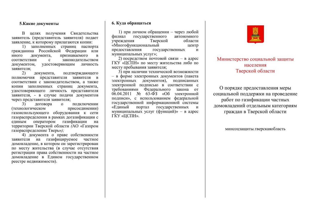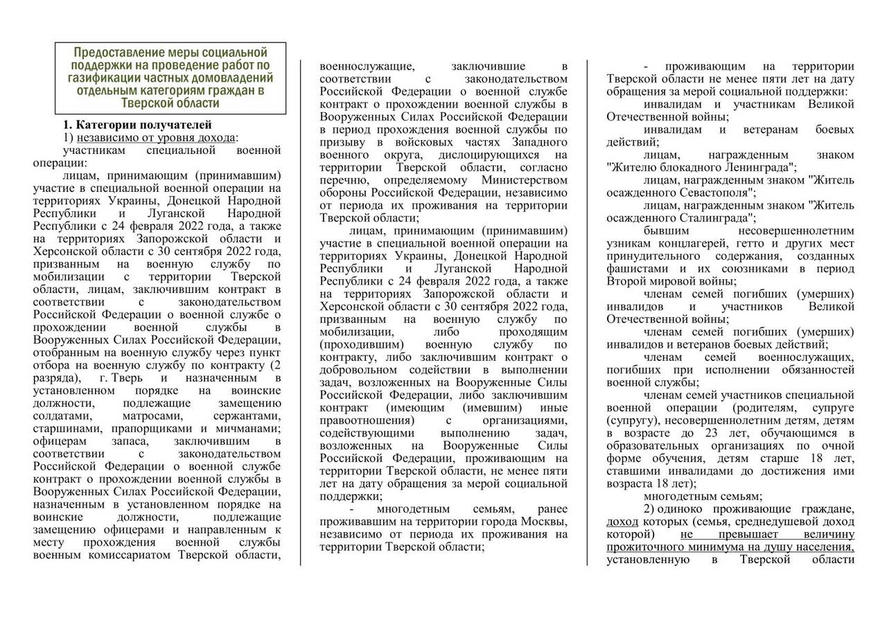 Предоставление меры социальной поддержки на проведение работ по газификации частных домовладений отдельным категориям граждан в Тверской области.
