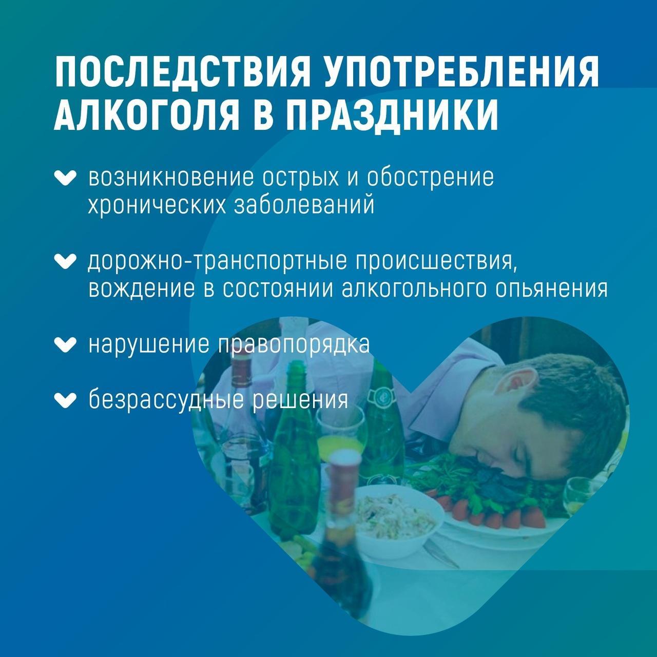 Отметим, что профилактика употребления алкоголя является важной задачей национального проекта «Демография» и способствует укреплению общественного здоровья! Как алкоголь влияет на здоровье человека и как встретить праздник без алкоголя читайте в карточках.