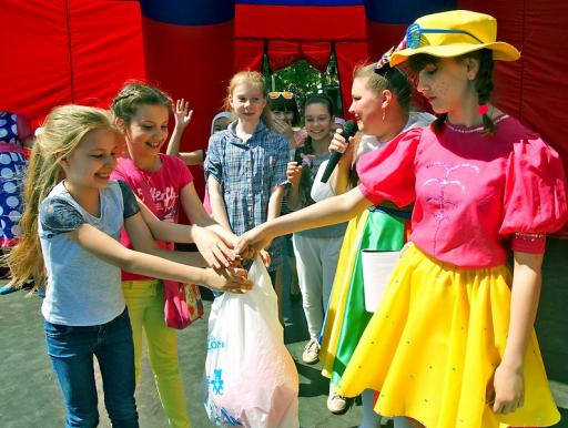 На центральной площади собралось около двухсот зрителей. Среди них были и учителя, и учащиеся, и будущие посетители лагерей дневного пребывания, и маленькие артисты, и высокие гости. Глава администрации района Олег Лобановский поздравил детей с их праздником и пожелал счастливого отдыха во время летнего сезона. После чего праздничный концерт открыли танцоры из из студии спортивного танца «Современник» (художественный руководитель Александр Акимов). В концерте также выступили танцевальные коллективы «Ритм» Натальи Капитановой, «Тип-Топ» и «Жемчужина» Елены Жугару, вокальные коллективы «Карамельки», «Бусинки», вокальная студия «Чародей» (руководитель Елена Дубинова), театр танца «Дебют» (руководитель Лариса Мухина). В перерывах между танцевальными и песенными номерами публике загадывали загадки, рассказывали смешные истории и всячески ее развлекали талантливые ведущие Ольга Гуляева и Алена Малышева.