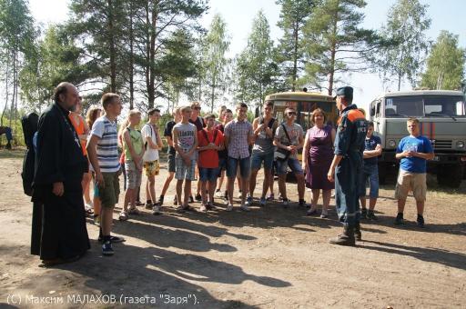 Идея провести концерт для спасателей силами районных творческих коллективов принадлежит Главе администрации района Олегу Лобановскому. Несколько дней назад он посетил лагерь спасателей, ознакомился с условиями быта, отдыха и работы пожарных. Сегодня в лагере под Радченко располагается около 50 спасателей, занятых на работах по обводнению торфяников в районе поселков Изоплит и Озерки. Как сказал командир подразделения подполковник Алексей Шереметьев, с поставленными задачами спасатели справляются. Для обводнения торфяников используется уникальный насосно-рукавный комплекс «Шквал», единственный в России аппарат для ликвидации пожаров, который перевозится на двух КАМАЗах, а при работе способен подавать воду объемом 300 литров в секунду. В лагере, который разместился в лесу в нескольких километрах от остановки «Дом рыбака», созданы все необходимые условия для нормального отдыха. Есть столовая, медицинский пункт, недавно в одной из палаток спасатели оборудовали баню.