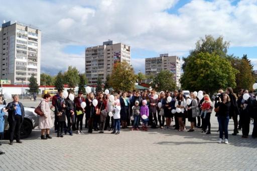 После рассказа ведущих и минуты молчания участники акции отпустили в небо белые шарики, наш символ мира и добра, предварительно написав лозунги за мир и против фашизма.