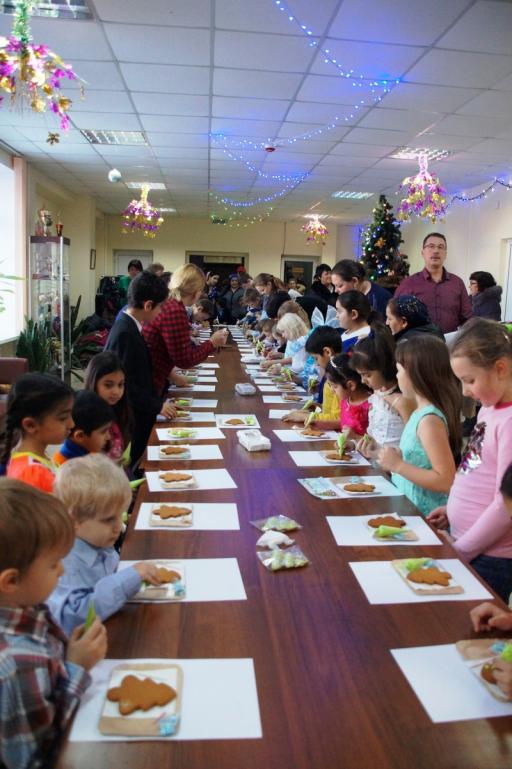 В начале мероприятия Наталья Брантова провела потрясающий мастер-класс по росписи имбирных пряников. Каждый из ребят смог почувствовать себя настоящим кондитером, рисуя узоры сахарной глазурью и украшая свою елочку посыпкой и звёздочками. Запах свежей выпечки, новогодние огоньки, счастливые глаза и смех детей – это именно то, что с самых первых минут создало невероятно праздничную и дружественную атмосферу мероприятия.